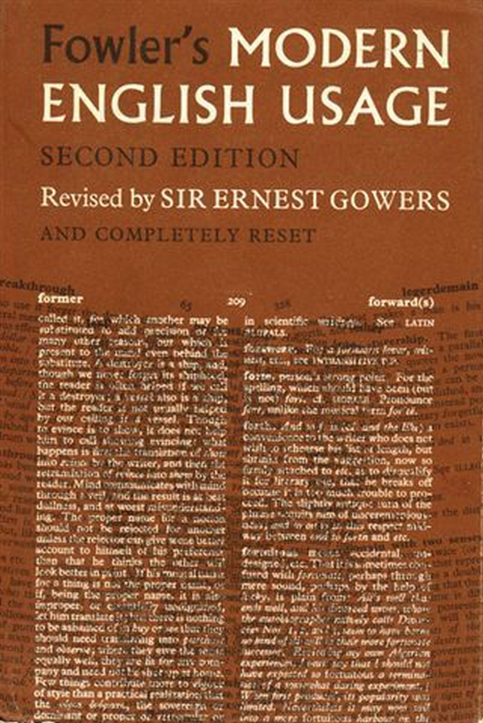 In an earlier post, I announced my attempts to reconstruct the publication history of Fowler’s Modern English Usage. This weekend, I was able to lay my hands on another copy of Fowler (my 8th!) at the same second-hand shop, and equally cheaply. It is a 1975 reprint of the second edition, revised by Ernest Gowers (1965).