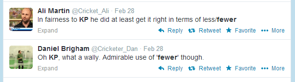 on Pietersen’s use of fewer