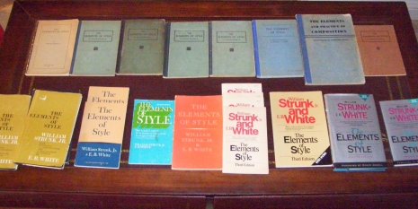 I own a few copies of Strunk and White, the revised version of the book published 41 years later, but looking for an image to go with this blogpost and also because I was curious to see what the very first edition looked like, I came across a website of someone who has been collecting different copies of The Elements of Style – my man entirely! Great display, and very interesting description of the collection. I’m very much impressed and wish …
